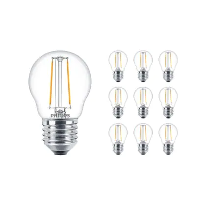 Confezione Multipack 10x Philips Corepro LED Lustre E27 Sferica Filamento Chiara 2W 250lm - 827 Bianco Molto Caldo | Sostitutiva 25W