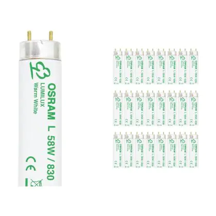 I Confezione Multipack 25x Osram T8 Lumilux 58W - 830 Luce Calda | 150cm sono i tubi più comuni e tra le lampade più vendute nel mondo. Questi tubi T8 (TL-D per Philips) hanno una lunghezza la quale corrisponde alla potenza di 58W.