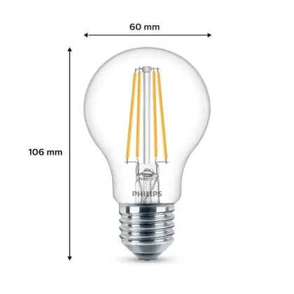 La Confezione Multipack 6x Philips Bulbo LED E27 Pera Filamento Chiara 7W 850lm - 840 Bianco Freddo è la perfetta sostituzione per la tua lampada convenzionale W con attacco E27 grazie alla sua tecnologia LED. Passare a LED ti offrirà tanti vantaggi!