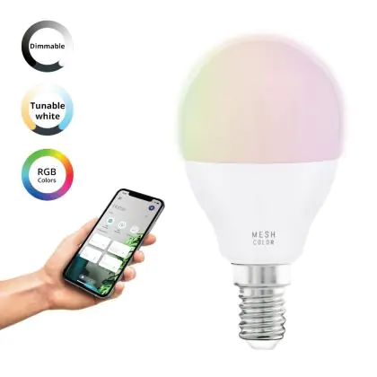 La lampada Eglo Connect.Z Smart LED Sferica E14 Ghiaccio 4.9W 470lm - 827 Bianco Molto Caldo | Dimmerabile - Sostitutiva 40W è il sostituto perfetto per le tue vecchie lampade 40W con attacco a vite piccolo E14 grazie alla sua tecnologia LED. Passare a LED ti offrirà molti vantaggi!