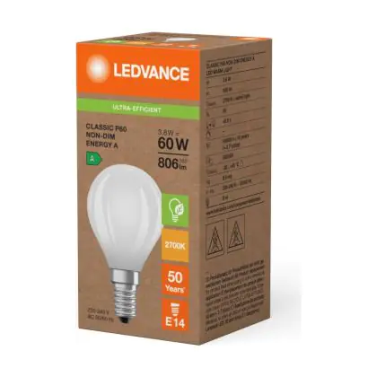 Risparmierai fino al 90% sui costi energetici e di mantenimento, grazie al basso consumo di energia assorbita dai 3.8W e ad una vita media utile di 50000 ore. A confronto: le lampade ad incandescenza tradizionali durano solamente 1000 ore. L’installazione delle lampadine LED è molto semplice: basta svitare le vecchia lampadina E14 a freddo ed avvitare la nuova lampada Ledvance Pera. Questo prodotto possiede la garanzia di qualità offerta da Ledvance e prezzi accessibili che partono da . Potrai utilizzare queste lampade usufruendo della Garanzia Totale Lampadadiretta.it di 5 anni.