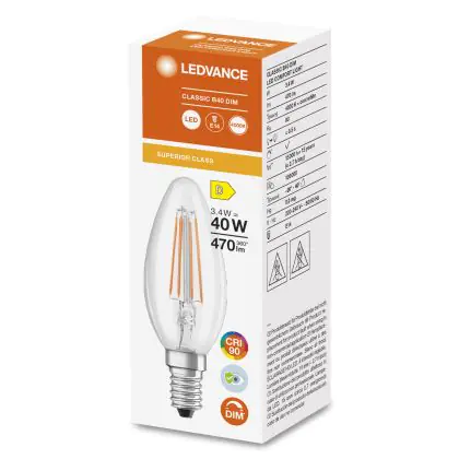 La lampada Ledvance Superior Classic LED E14 Piegato-Tip Candela Filamento Chiara 3.4W 470lm - 940 Bianco Freddo | Dimmerabile - Miglior resa cromatica è il sostituto perfetto per le tue vecchie lampade 40W con attacco a vite piccolo E14 grazie alla sua tecnologia LED. Passare a LED ti offrirà molti vantaggi!