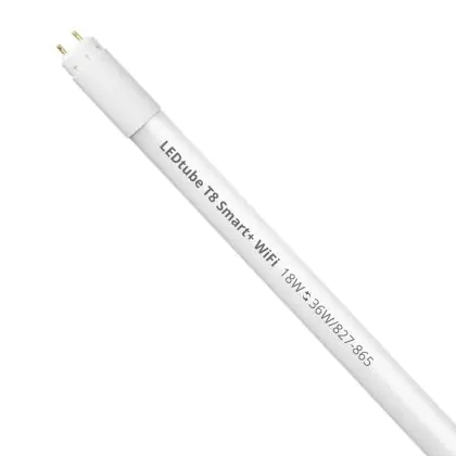Il Ledvance Tubo LED T8 Smart+ WiFi (EM/Mains) Ultra Output 18W 2300lm - 827-865 Regolabile Bianca | 120cm - Sostitutiva 36W è l’alternativa perfetta per il tubo fluorescente standard 36W nelle plafoniere con un reattore. Con questo tubo LED hai una garanzia di una vita media utile molto lunga e 3 anni Lampadadiretta.it di totale garanzia. .