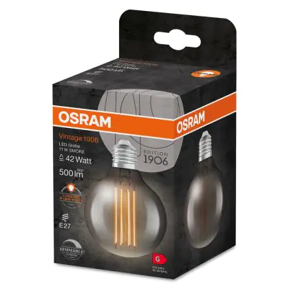 La Ledvance Vintage 1906 LED E27 Globe Smoke 11W 500lm - 818 Bianco Molto Caldo | Dimmerabile - Sostitua 42W è la perfetta sostituzione per la tua lampada convenzionale 42W con attacco E27 grazie alla sua tecnologia LED. Passare a LED ti offrirà tanti vantaggi!
