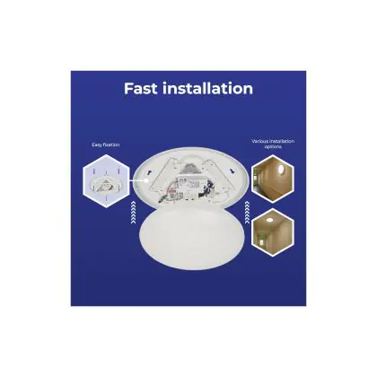 Prima di sostituire un vecchio apparecchio di illuminazione con uno nuovo è sempre consigliabile controllare le dimensioni. Installare questa plafoniera LED è molto facile: basta leggere attentamente le istruzioni e utilizzare il materiale di installazione fornito (viti, tasselli, ecc.). Se hai dubbi sull’installazione consulta un installatore certificato. Per questa lampada offriamo una garanzia di 5 anni