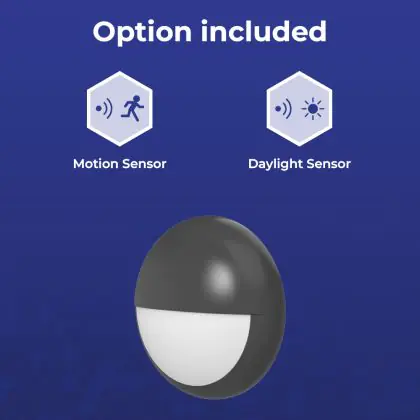 Descrizione Noxion Bulkhead LED Pro V2 Bianca 12/16/20W 2400lm - 830-840-865 CCT | 325mm - IP65 - Sensore di Movimento e Luce + Palpebra Il Anello Nero
