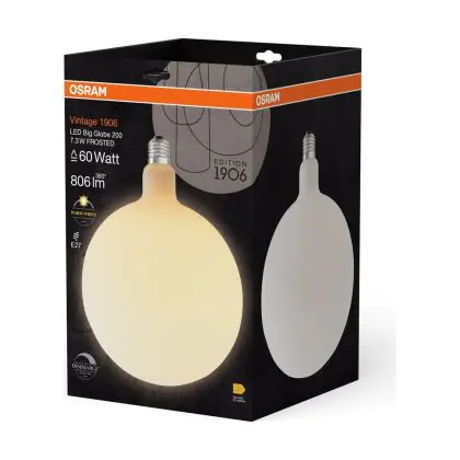 La Osram Vintage 1906 LED E27 Sferica Filamento Ghiaccio 7.3W 806lm - 827 Bianco Molto Caldo | Dimmerabile - Sostitutiva 60W è la perfetta sostituzione per la tua lampada convenzionale 60W con attacco E27 grazie alla sua tecnologia LED. Passare a LED ti offrirà tanti vantaggi!