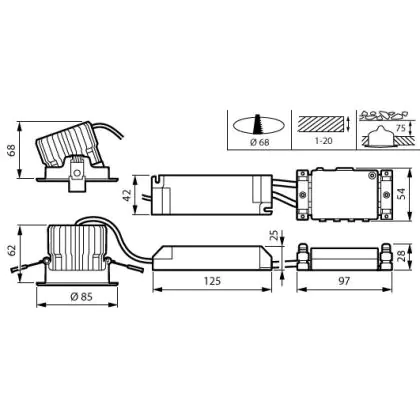 Descrizione Philips Faretti LED RS156B CoreLine Aluminium Bianca 12.3W 1300lm 36D - 830 Luce Calda - | 85mm - Ritaglio 68mm - IP20/44 - Dali Dimmerabile