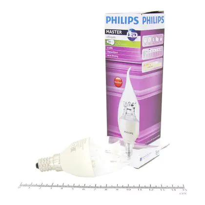 Descrizione Philips MASTER LED Candela E14 Piegato-tip Corona Chiara 4W 250lm - 822-827 Dim To Warm | Dimmerabile - Sostitutiva 40W